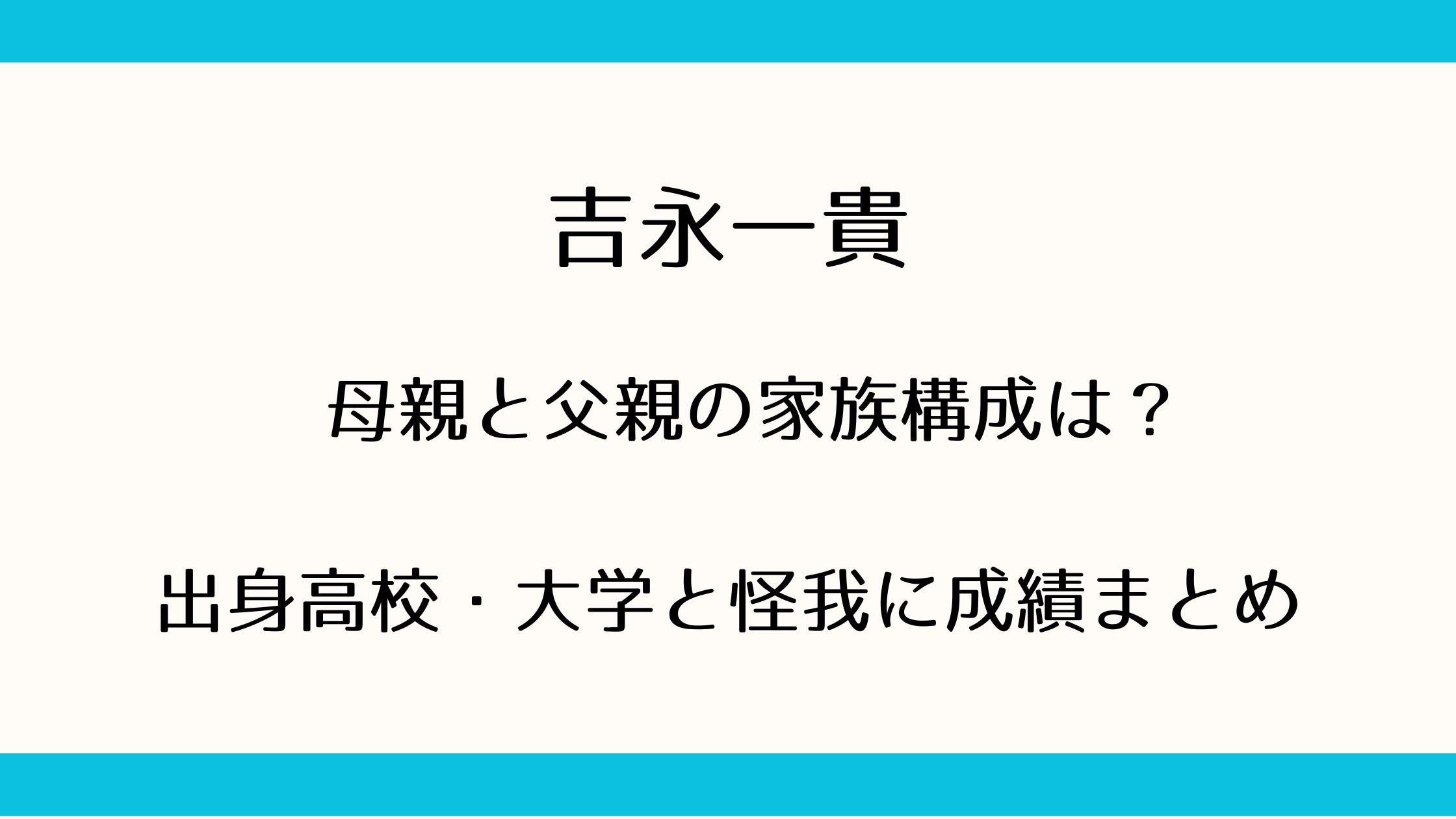 家族は父、母、12歳年上の兄、そして吉永一貴選手の4人家族で構成されています。